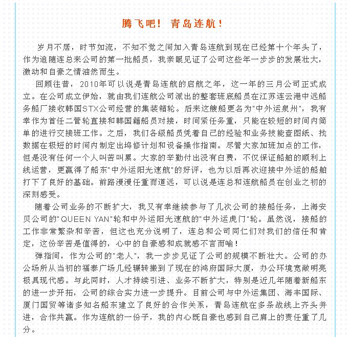 騰飛吧!青島連航!